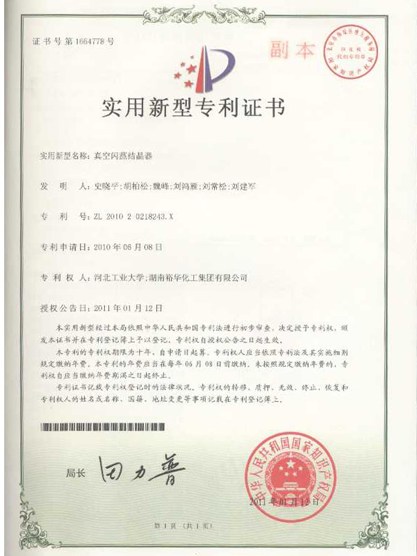 實用性新型專利證書2011