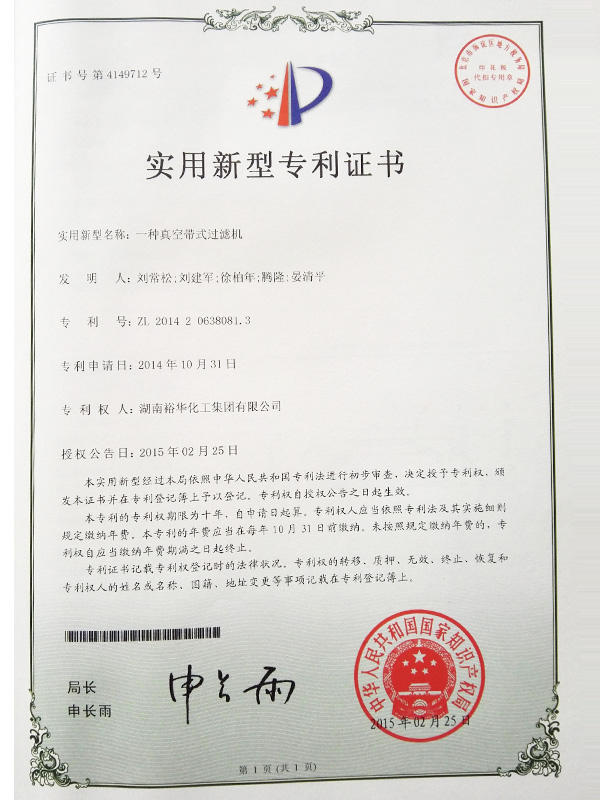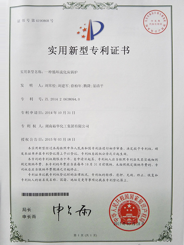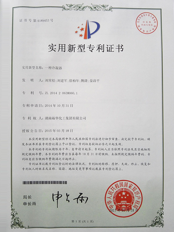 實用性新型專利證書2015-1